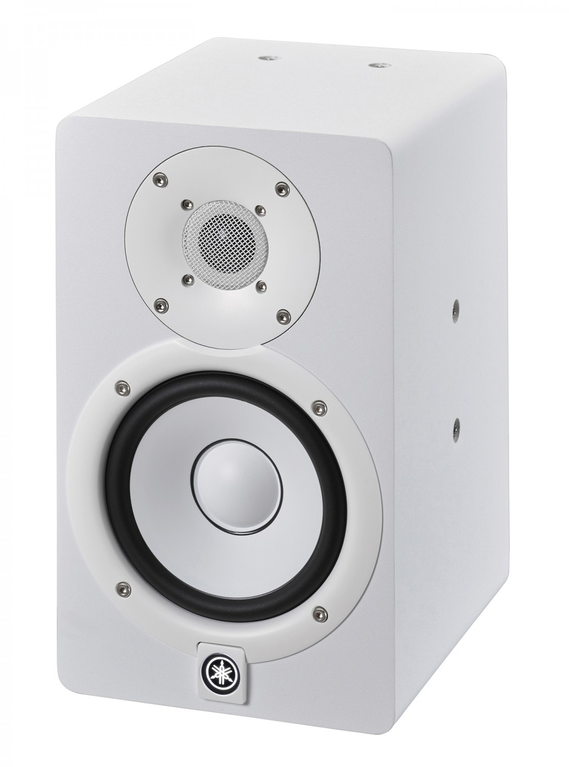 El monitor de estudio HS5I de Yamaha, un modelo blanco de 2 vías con biamplificación,