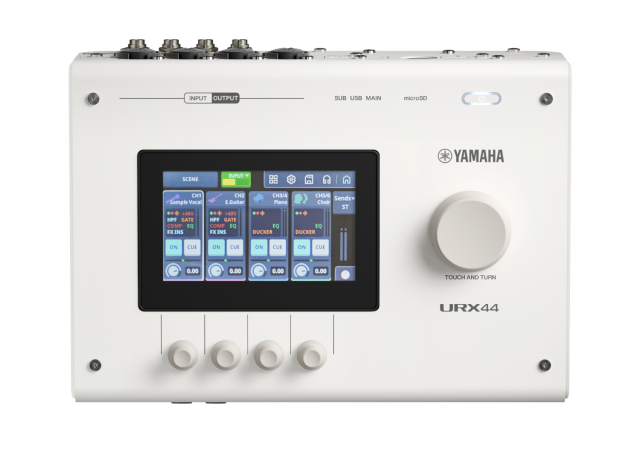 El Yamaha URX44 es una potente interfaz de audio USB-C con 6 entradas y 4 salidas, diseñada para la grabación con múltiples micrófonos, el trabajo en equipo y los flujos de trabajo de producción avanzados. Ofrece una calidad de sonido nítida de 32 bits/192 kHz y combina convertidores profesionales con mezcla integrada y efectos DSP.