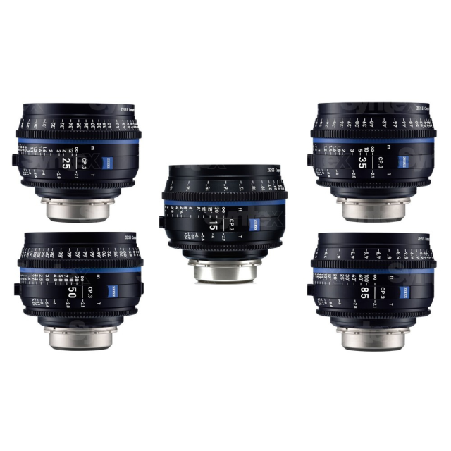 Set de cinco objetivos ZEISS CP.3 a un precio especial (CP.3 15/2,9, CP.3 25/2,1, CP.3 35/2,1, CP.3 50/2,1 y CP.3 85/2,1) que supone un ahorro de unos 60 000 CZK sin IVA en comparación con la compra individual de los objetivos.