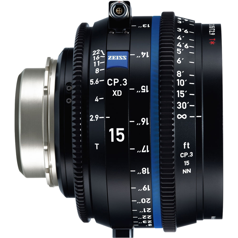 De serie, los objetivos se suministran con montura PL, aunque también se pueden pedir en versiones EF, E, F y MFT. Variante ampliada del objetivo CP.3 XD con tecnología «eXtended Data» para la exportación de metadatos. Los metadatos se transmiten a través de la interfaz electrónica de los objetivos PL y/o mediante un cable con conector Lemo para Ambient MasterLockitPlus/Pomfort. Los datos se pueden aplicar, por ejemplo, mediante el complemento OpenFX incluido para Blackmagic Design DaVinci Resolve o a través de Pomfort LiveGrade Pro directamente durante la grabación. Los metadatos incluyen datos según la tecnología Cooke /i (nombre del objetivo, tipo, distancia focal, enfoque, apertura, profundidad de campo, ángulo de campo horizontal, posición de la pupila de entrada) y datos específicos de Zeiss (características de distorsión de la óptica en función de la distancia focal, viñeteado en función de la distancia focal y la apertura).