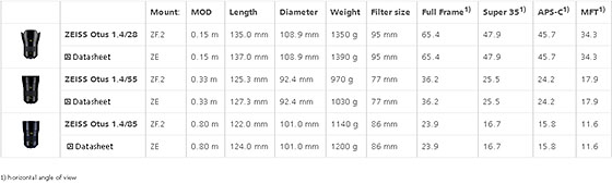 Set a precio reducido compuesto por tres objetivos ZEISS Otus (28/1,4, 55/1,4, 85/1,4)