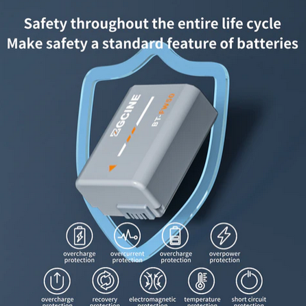La ZGCINE BT-FW50 es una batería de iones de litio de alto rendimiento con una capacidad de 1030 mAh, desarrollada como sustituto exacto de la batería Sony NP-FW50. Está totalmente decodificada, se comunica sin problemas con el cuerpo de la cámara, muestra el porcentaje exacto de carga de la batería y admite la recarga en la cámara sin que aparezcan mensajes de error. Está fabricada con celdas de iones de litio de primera calidad y equipada con un avanzado sistema de protección de 8 capas (contra sobrecarga, sobrecorriente, cortocircuito, sobrecalentamiento, etc.), lo que le permite ofrecer un rendimiento estable y fiable. En combinación con las fundas de carga de la serie ZGCINE PS o los cargadores de la serie PC, admite la carga de alta velocidad y alcanza el 100 % de su capacidad en aproximadamente 2 horas, lo que es significativamente más rápido que la carga estándar.