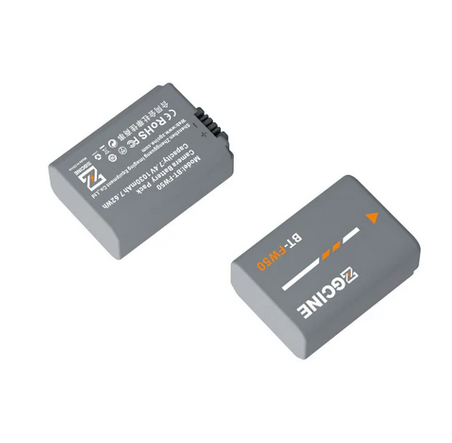 La ZGCINE BT-FW50 es una batería de repuesto totalmente compatible con una capacidad de 1030 mAh (7,2 V) de otro fabricante para cámaras Sony, que reproduce a la perfección la batería original NP-FW50 en cuanto a tamaño y funcionalidad —sin avisos, visualización completa de la información de la cámara— y, además, ofrece una carga ultrarrápida (carga completa en ~2 horas con los cargadores ZGCINE PS/PC) y una protección de seguridad premium de 8 capas.
