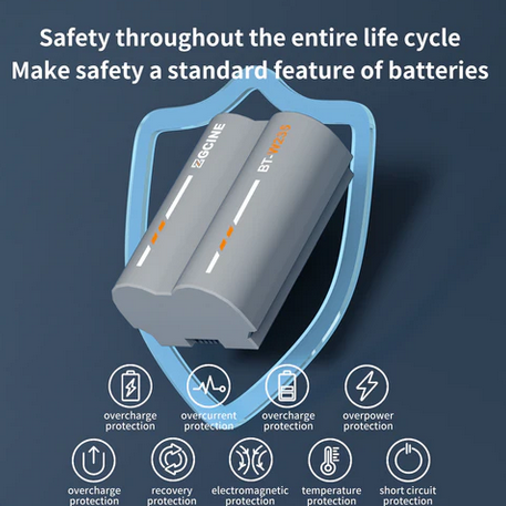La ZGCINE BT-W235 es una batería profesional de iones de litio con una capacidad de 2400 mAh, diseñada como sustituto directo de la batería Fujifilm NP-W235. Gracias a su decodificación completa, se comunica con la cámara sin problemas, muestra con precisión la energía restante y admite la recarga en la cámara sin ventanas emergentes ni restricciones. Está fabricada con celdas de iones de litio de primera calidad y equipada con un avanzado circuito de protección de 8 capas (contra sobrecarga, sobrecorriente, cortocircuito, sobrecalentamiento, etc.), lo que garantiza un rendimiento estable y una mayor seguridad. Cuando se utiliza con fundas de carga de la serie ZGCINE PS o cargadores de la serie PC, admite una carga ultrarrápida y alcanza el 100 % de su capacidad en aproximadamente 2 horas, mucho más rápido que los métodos de carga estándar.