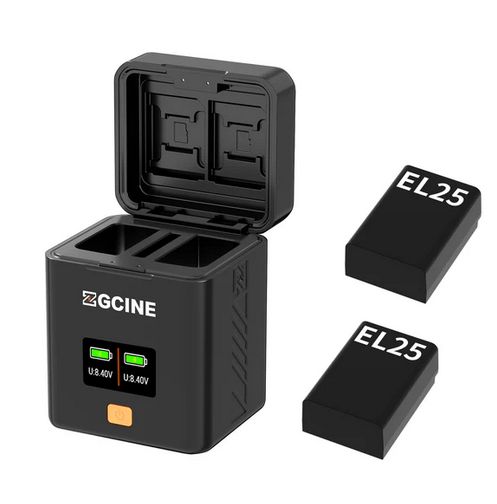 La funda de carga ZGCINE para Nikon EN-EL25 es una solución de carga universal diseñada para los usuarios de cámaras Nikon. Admite entrada USB-C PD para una carga rápida con opciones de 5 V/3 A o 9 V/3 A. El estuche está equipado con dos ranuras para tarjetas SD, dos ranuras para tarjetas TF y una ranura para tarjetas CFE tipo B, lo que permite un mejor almacenamiento y gestión de los soportes. La pantalla OLED integrada de 0,96 pulgadas ofrece una visualización clara del estado de carga y otros detalles. Este estuche de carga compacto y eficaz es el compañero ideal para los fotógrafos que necesitan una solución portátil y organizada para cargar y guardar baterías EN-EL25 y tarjetas de memoria.