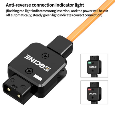 El cable de alimentación ZGCINE D-Tap a mini XLR de 4 pines (DT-MX) está diseñado para proporcionar una alimentación fiable a los monitores TVLogic en las exigentes condiciones de las retransmisiones y las salas de cine. Está equipado con un conector D-Tap giratorio de 180° con un indicador de seguridad integrado que evita la inserción inversa, lo que garantiza una conexión segura y fiable. Su estructura trenzada de nailon extremadamente resistente garantiza flexibilidad y una larga vida útil, mientras que su longitud de 60 cm (23,5 pulgadas) y su diseño ligero, con un peso de 70 g, permiten un manejo práctico. Este cable proporciona una entrada/salida estable de 14,8 V con una carga máxima de 150 W (10 A) y permite un funcionamiento prolongado de monitores de campo profesionales directamente desde sistemas de baterías D-Tap, que son el estándar en este sector.
