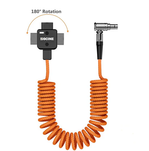 El cable de alimentación ZGCINE DT-LMD-Tao con conector Lemo macho de 2 pines ofrece una conexión de alimentación resistente para cámaras RED, ARRI y SONY, con un conector D-Tap giratorio de 180° y un conector Lemo en ángulo recto de 90°.