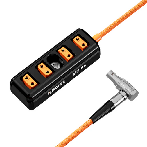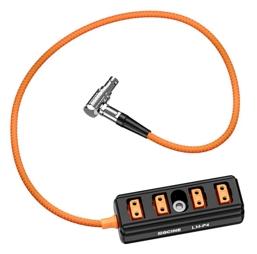 El adaptador distribuidor ZGCINE LM-P4, de Lemo 2 pines macho a 4 puertos D-Tap, proporciona una distribución fiable de la alimentación con cuatro salidas D-Tap para cámaras y accesorios, y está equipado con protección contra sobretensiones, sobrecalentamiento y cortocircuitos.