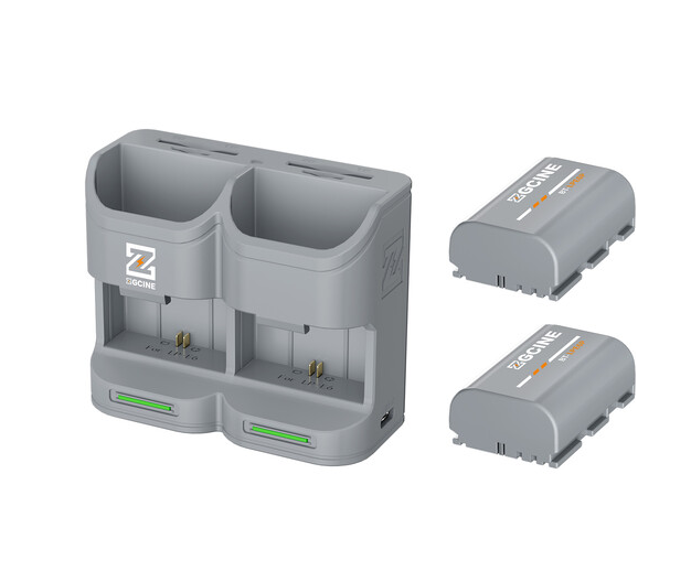 El kit de estuche de carga para viaje ZGCINE PC2-LPE6P incluye dos baterías LP-E6P (grises) de alta capacidad (2600 mAh) y un estuche de carga compacto que proporciona una fuente de energía fiable para las cámaras sin espejo de Canon (R5, R6, R7), cámaras Blackmagic Pocket Cinema (4K/6K), Z CAM E2 y accesorios como el Tilta PowerGrip y el SmallRig MagicFIZ, lo que lo convierte en una solución de alimentación portátil imprescindible para equipos profesionales de cine y fotografía.