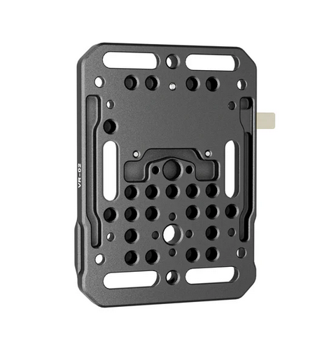 La placa de batería ZGCINE VR-02 V-Lock Mount es una solución fiable y versátil para montar baterías V-mount en tu equipo de cámara. Está diseñada con un soporte V-lock y una palanca de liberación rápida, y es compatible con la mayoría de las baterías V-mount (excepto las baterías PAGlink y Patona Premium BP-190WS). Esta placa es una solución de montaje pasiva, lo que significa que no contiene ningún componente electrónico y que, para alimentar su equipo, depende de las propias salidas de la batería. La placa incluye varios puntos de montaje, como espigas avellanadas de 1/4"-20", M3, M4, orificios roscados de 1/4"-20", orificios roscados M4 y un orificio roscado ARRI de 3/8"-16, por lo que es muy adaptable para fijar accesorios como pinzas de doble varilla o brazos mágicos. La estabilidad está garantizada por dos topes que evitan que la batería se tuerza durante el montaje. Esta placa está fabricada en aluminio resistente, está diseñada para soportar las duras condiciones del uso profesional y es compatible con cámaras como la Blackmagic URSA Mini. Tenga en cuenta que no se incluye ninguna pieza V-Lock (macho) y que la placa no dispone de puertos de alimentación.