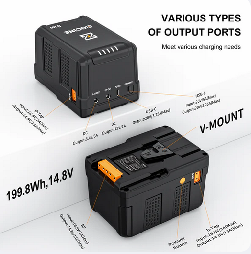 La batería ZGCINE 200Wh V-Mount es una fuente de energía versátil y de alto rendimiento diseñada para cineastas, operadores de cámara y creadores de contenido. Gracias a su gran capacidad de 200Wh, proporciona una mayor autonomía para diversos dispositivos, incluyendo cámaras, monitores, luces LED y otros.