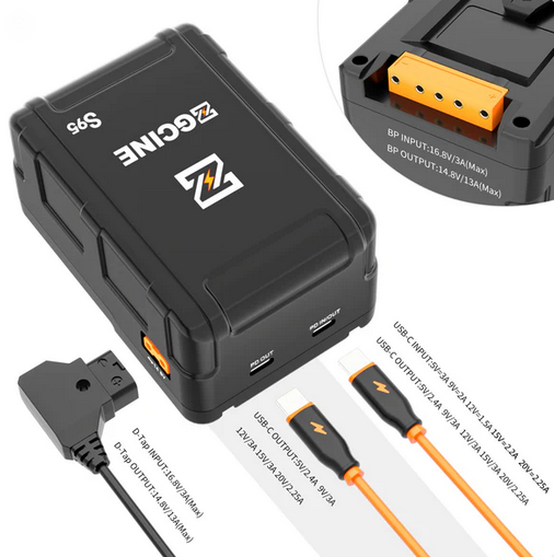La batería ZGCINE V-Mount (16,8 V, 95 Wh) es una solución de alimentación de alto rendimiento diseñada para equipos de vídeo. Ofrece varias opciones de salida, entre ellas USB-C PD y D-Tap, lo que garantiza una alimentación versátil y fiable para equipos de filmación profesionales.
