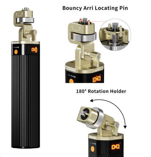 La empuñadura de batería ZGCINE ZG-H90Pro está diseñada para proporcionar una alimentación fiable y eficiente a las cámaras y los accesorios. Está equipada con un pasador de posicionamiento Arri y un soporte giratorio de 180°, lo que garantiza una fijación segura y un posicionamiento flexible. La empuñadura admite entrada/salida USB-C PD para una carga rápida e incluye una salida D-Tap de 14,8 V para ofrecer más opciones de alimentación. Su conector universal para trípode de iluminación aumenta la compatibilidad con diferentes configuraciones. El indicador luminoso de carga proporciona información sobre el estado de la alimentación en tiempo real, lo que lo convierte en un accesorio indispensable para los cineastas profesionales.