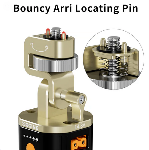Seguro y ajustable: pasador de posicionamiento Arri y soporte giratorio de 180° para un montaje flexible