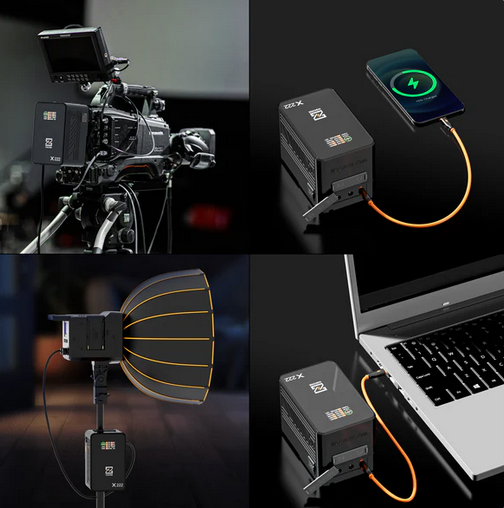 La ZGCINE ZG-X222 es una batería de alta capacidad con montura en V de 222 Wh, equipada con carga rápida bidireccional USB-C PD 3.1 de 140 W, capaz de alcanzar el 80 % de carga en tan solo 1,5 horas. Ofrece una amplia gama de puertos de salida, incluidos tres puertos D-Tap (uno con boost de 22 V), pioneros en el sector, y una pantalla digital inteligente de 1,4 pulgadas para supervisar el rendimiento en tiempo real.