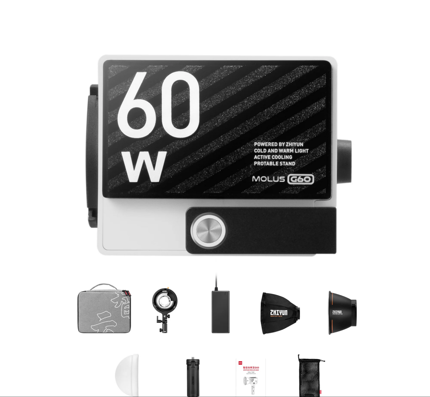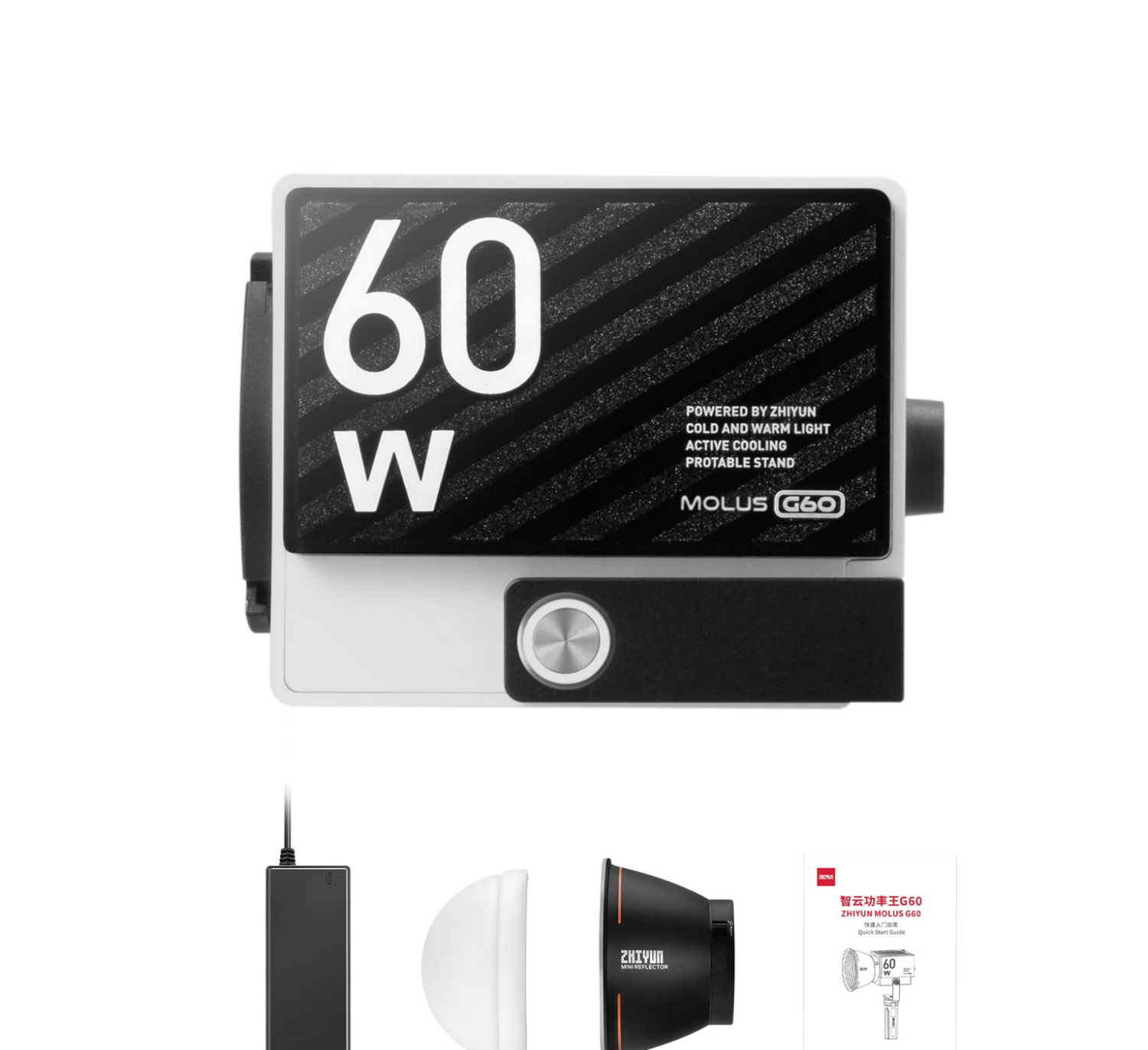 Gracias a su alta potencia de 60 W, respaldada por una innovadora tecnología de refrigeración, la iluminación profesional MOLUS G60 resulta mucho más sencilla para todo el mundo. La G60 funciona como una luz de cine universal y garantiza que tu trabajo ya no esté limitado por el lugar, el espacio ni el tiempo.