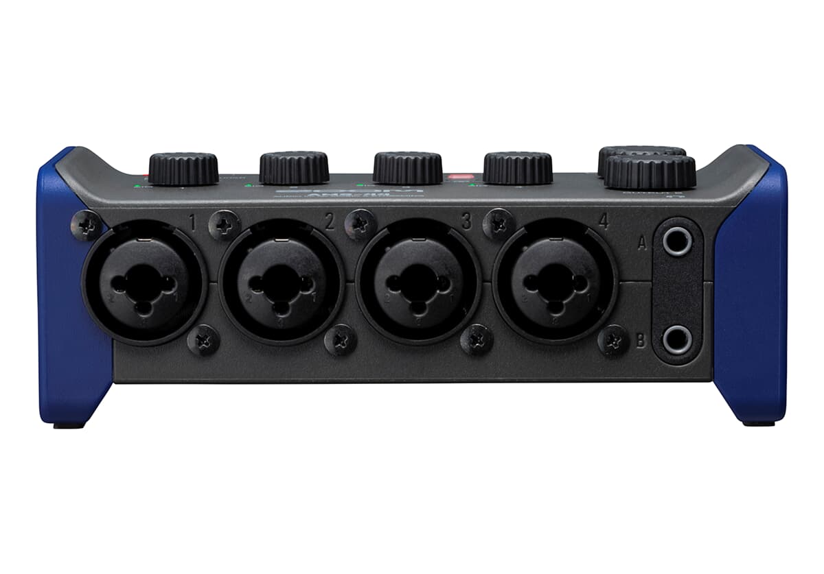 No importa si estás grabando o retransmitiendo: con el AMS-44, tu configuración siempre será sencilla y clara. La interfaz ofrece cuatro entradas combinadas XLR/TRS con potentes preamplificadores Zoom de bajo ruido. También hay disponibles dos salidas de auriculares y dos conectores TRS para conectar monitores externos.