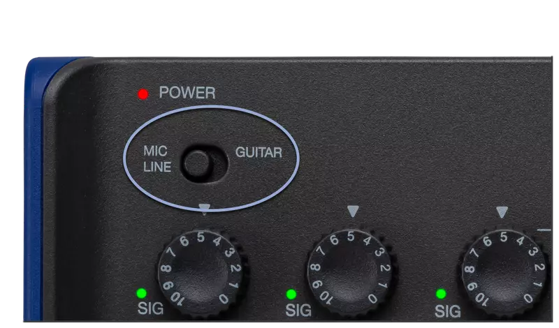 Aquí puedes activar el modo Mic/Line o Guitar (Hi-Z) para la entrada 1.