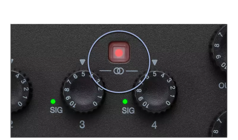 Aquí puedes combinar dos señales de entrada en una sola señal estéreo, que luego puedes grabar o transmitir. Ambas entradas se pueden controlar mediante un único control de ganancia.
