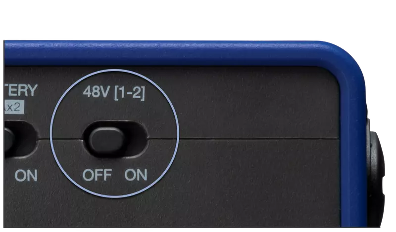 Aquí puede activar la alimentación fantasma de +48 V para micrófonos de condensador.