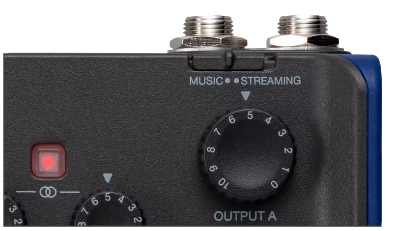 Con el conmutador Music/Streaming, puedes cambiar fácilmente entre los modos de grabación y streaming. En el modo Music, puedes controlar cada entrada por separado mediante su propio control de ganancia. Además, puedes enviar una mezcla diferente a cada salida de auriculares.