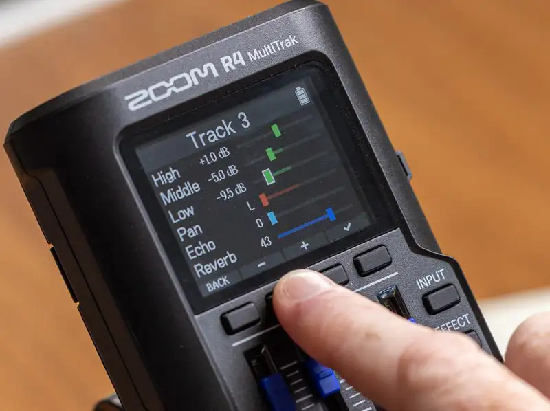 Cada pista cuenta con un ecualizador de tres bandas, panoramización, eco y reverberación para mejorar la mezcla.