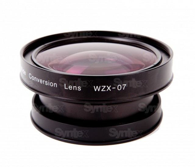 La óptica profesional Zunow WZX-07 se acopla fácilmente a la rosca de 72 mm situada en la parte delantera del objetivo de la videocámara con un rango de 3,9-78 mm y proporciona un campo de visión gran angular un 30 % mayor. Una vez instalada, la óptica WZX-07 adapta el objetivo original de la cámara de 3,9-78 mm a una distancia focal más amplia de 2,73-54,6 mm. Si se utiliza el equivalente a una cámara réflex de 35 mm, el objetivo original de 37,4-748 mm se amplía a 26-523 mm. El objetivo conserva todo el zoom sin pérdida de luminosidad ni viñeteado.